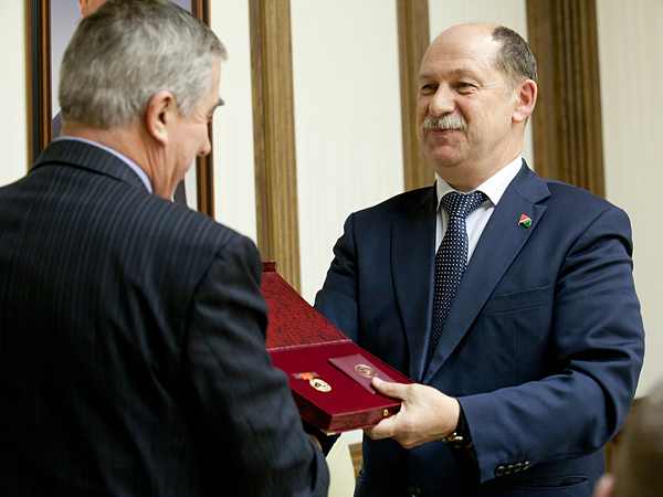 В завершении заседания председатель Совета Александр Баранов наградил Почётным знаком Совета муниципальных образований Московской области председателя Совета депутатов Егорьевского муниципального района Михаила Трофимовича Лаврова и председателя Совета депутатов Можайского муниципального района Лидию Семеновну Афанасьеву.