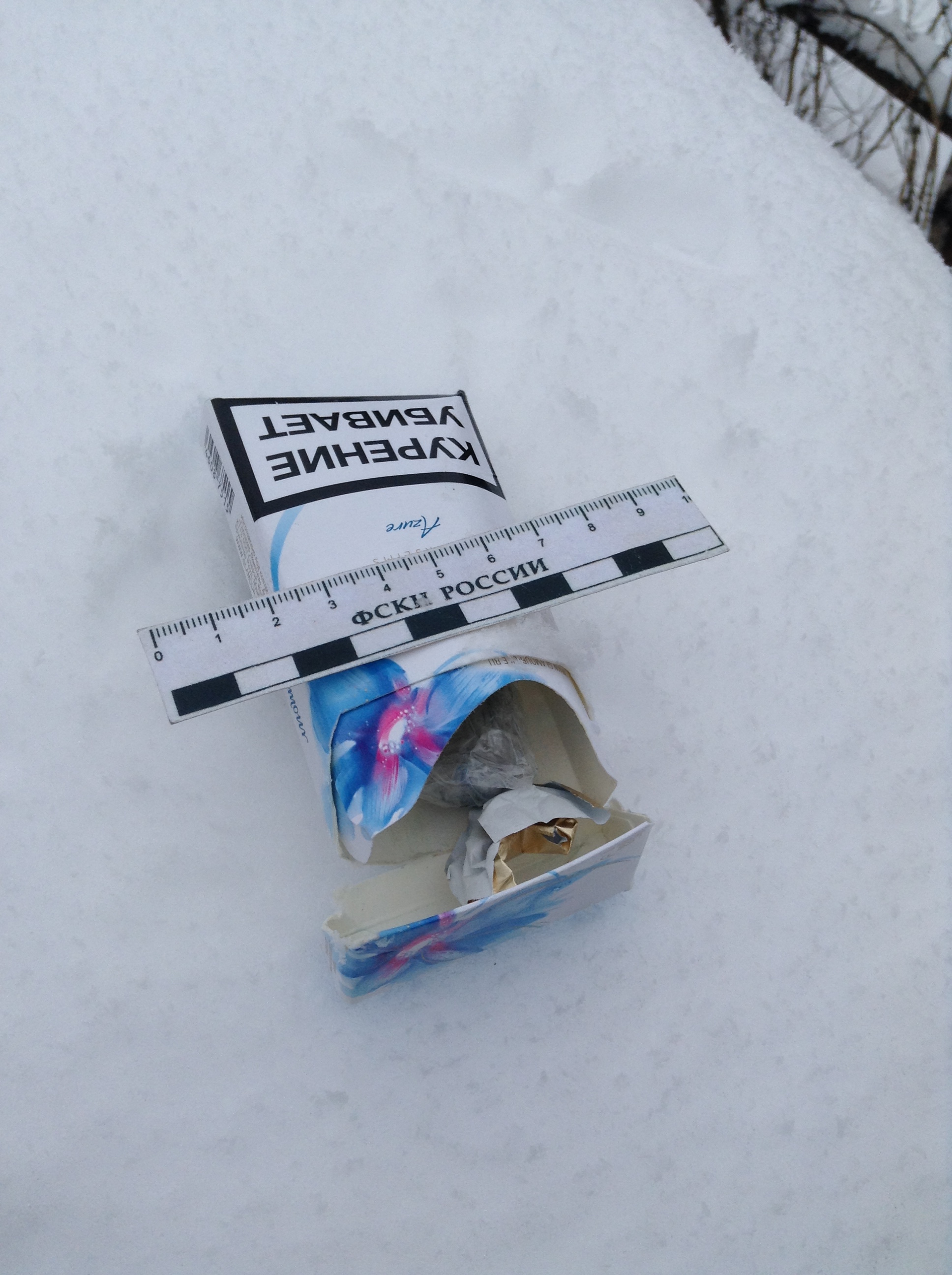 Как сообщили сотрудники службы ФСКН, подозреваемый в сбыте наркотических средств гражданин дал признательные показания, но впоследствии отказался от них, заявив, что хранил у себя наркотики без цели сбыта. Однако сотрудники ФСКН обнаружили в памяти телефона задержанного записи о местах, где задержанный оставлял свёртки с наркотическими веществами для своих клиентов. Информацию, содержащуюся в памяти телефона, было решено проверить. Для этого в каждом из указанных мест произвели тщательный осмотр с целью обнаружения предметов и веществ, которые могли бы стать вещественными доказательствами по данному делу. И по одному из адресов, указанных в телефоне, была найдена сигаретная пачка со свёртком внутри. Свёрток был опечатан организаторами операции и отправлен на экспертизу.