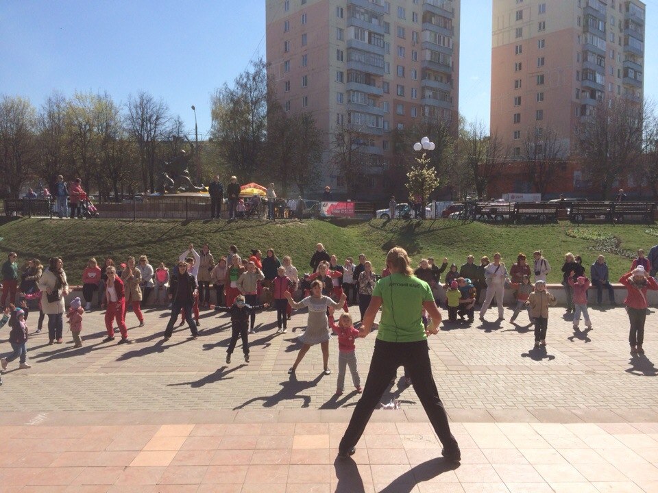 Так, в прошлую субботу, 26 апреля, зарядка началась с упражнений детского танцевально-спортивного комплекса, а затем площадку возле городского кинотеатра «Искра», где проводятся занятия, взорвала танцевальная фитнес-программа «Zumba» !