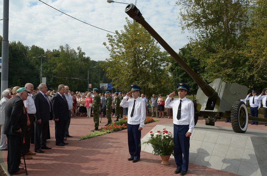 Сегодня трудно себе представить, что в годы Великой Отечественной войны на месте нынешней памятной гаубичной пушки была боевая позиция красноармейцев, отражавших налёт фашистской авиации на Москву.