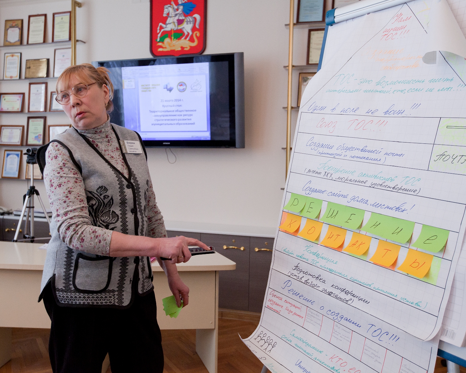 После презентации проектов, участники круглого стола обсудили перспективы развития общественного самоуправления в Московской области. Как отметил исполнительный директор Совета муниципальных образований Московской области Олег Иванов, на сегодняшний день по уровню развития институт ТОС в Подмосковье во многом уступает другим регионам. «В Краснодарском крае, например, ТОСов порядка нескольких тысяч, в Волгоградской области – около двух тысяч. В Московской области – около 100-150 ТОСов, из них реально действующих ещё меньше».