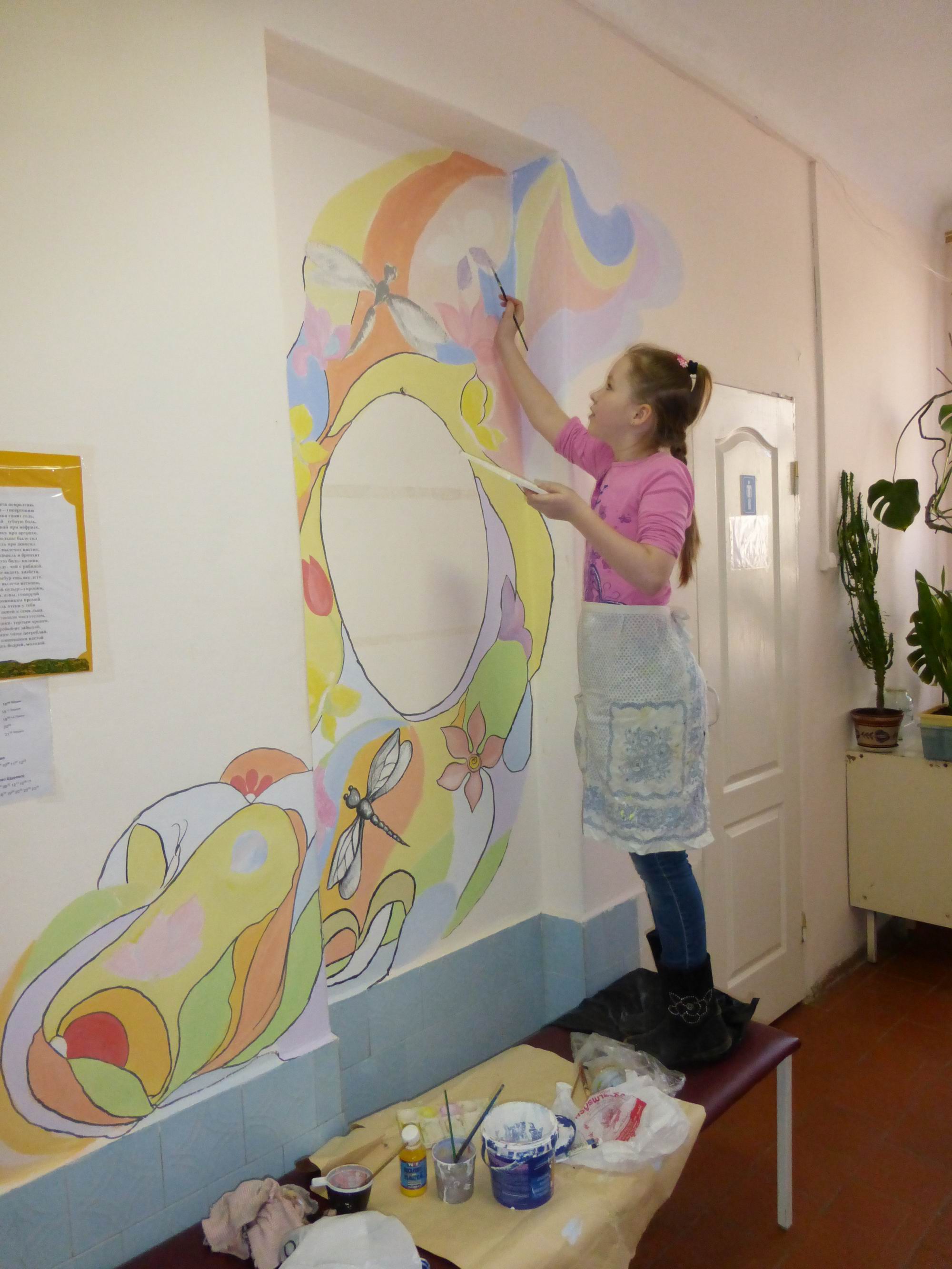 Каждый из нас может подарить частичку своей души и тепла тем, кто в этом нуждается. Именно так и поступили воспитанники Центра внешкольной работы Коломенского района из объединения «Акварельки», действующего на базе Сергиевской школы. Они расписали одну из стен в рекреации терапевтического отделения больницы поселка Сергиевский.