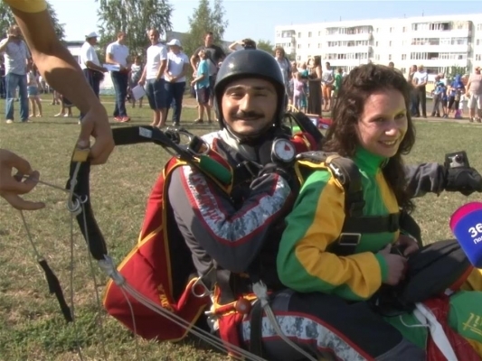 Прыжки с высоты более 2000 метров позволили совершить и новичкам. Парный прыжок с парашютом совершила заместитель руководителя районной администрации Елизавета Назарьева.