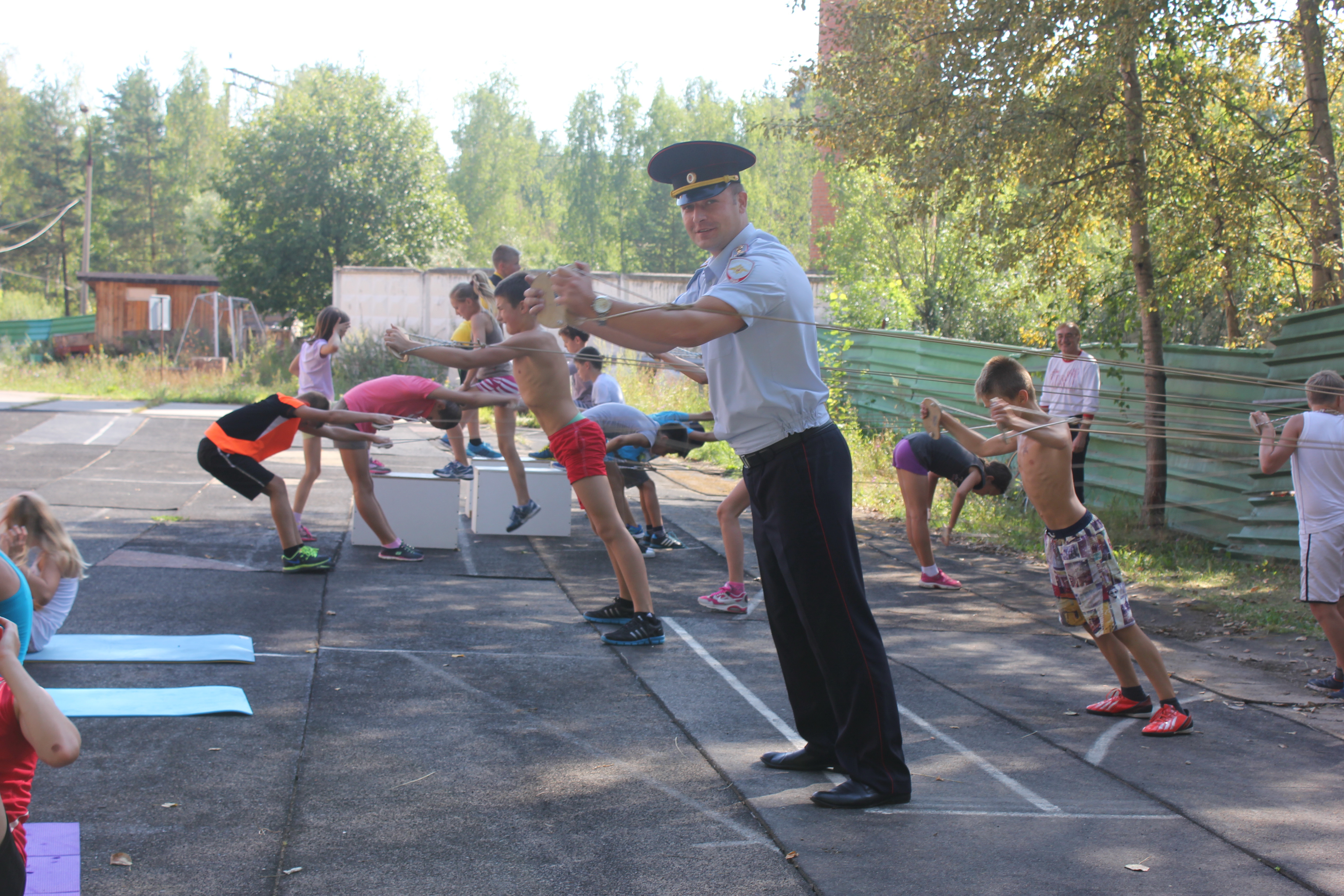 9 августа в детском лагере ЗУОК «Солнечный», расположенном в пос. Поварово, сотрудники полиции провели акцию «Зарядка со стражем порядка».